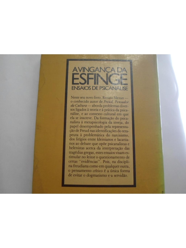 - Os ensaios aqui reunidos, ao abordarem diferentes tópicos do debate psicanalítico, desejam contribuir para que ele permaneça vigoroso e instigante. Pois, se a psicanálise convoca a esfinge, não é para silenciá-la novovamente, mas para que seus enigmas possam ser ouvidos. O livro é de edição antig