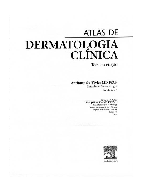 - Atlas de Dermatologia Clínica . Anthony du Vivier . Elsevier . 2004 . 755 . capa dura em bom estado . sem sublinhados ISBN 9788535214758