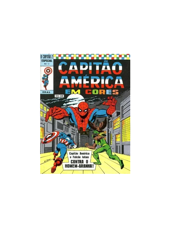 - Capitão América em Cores (Capitão Z Especial) n° 5 Publicado em: mar/abr de 1973 Editora: Ebal Licenciador: Marvel Comics Categoria: Revista Periódica Gênero: Super-heróis Status: Título encerradoNúmero de páginas: 28 Formato: (18 x 26 cm) Colorido/Lombada com grampos Preço de capa: Cr 2, 00 Crédito