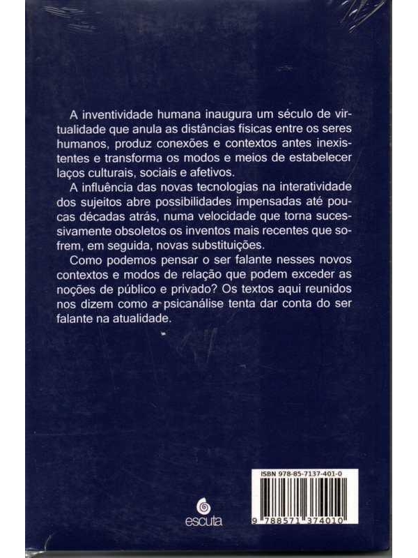 - Livro Novo, no plástico. 252 páginas, formato: 14 x 21 cm. Imagens do próprio livro. Sinopse: " A inventividade humana inaugura um século de virtualidade que anula as distâncias físicas entre os seres humanos, produz conexões e contextos antes inexistentes e transforma os modos e meios de estabelece
