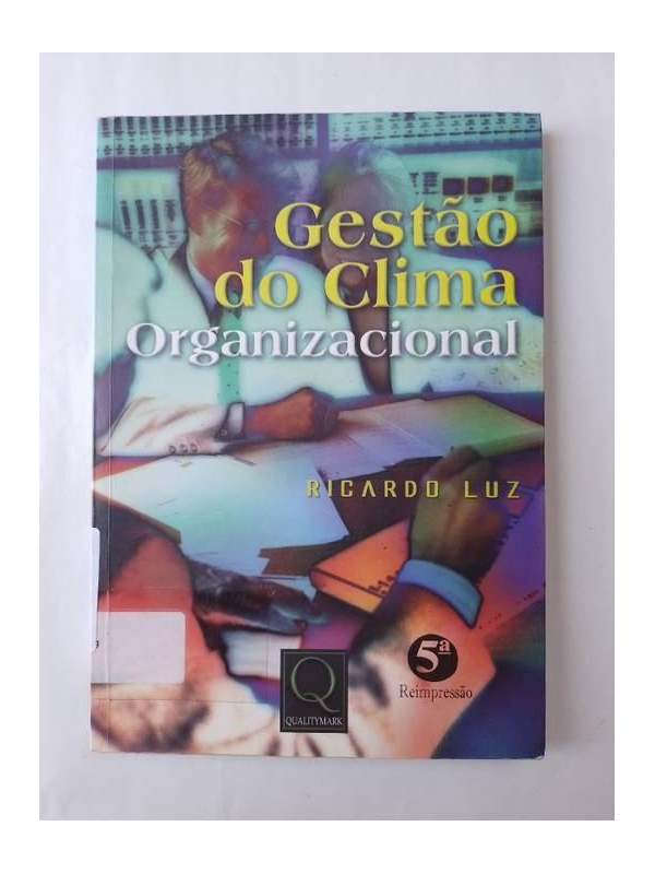 - TÍTULO: GESTÃO DO CLIMA ORGANIZACIONAL | AUTOR: RICARDO LUZ | EDITORA: QUALITYMARK | ANO: 2003 | EDIÇÃO: 1 | VOLUME: - | ISBN: 9788573037371 | IDIOMA: Pt | CAPA: Brochura __________ ESTADO DE CONSERVAÇÃO: Livro em ótimo estado de conservação. Livro doado por biblioteca, possui carimbos e etiquetas