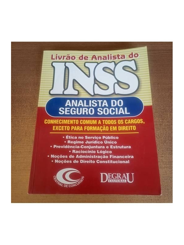- Livrão de Analista do INSS - Analista do Seguro Social. Conhecimento comum a todos os cargos, exceto para formação em direito. 388 páginas. Exemplar usado em bom estado, com alguns grifos e preenchimento dos exercícios com lápis. Imagem real. Para fotos adicionais, entre em contato com o vendedor. L