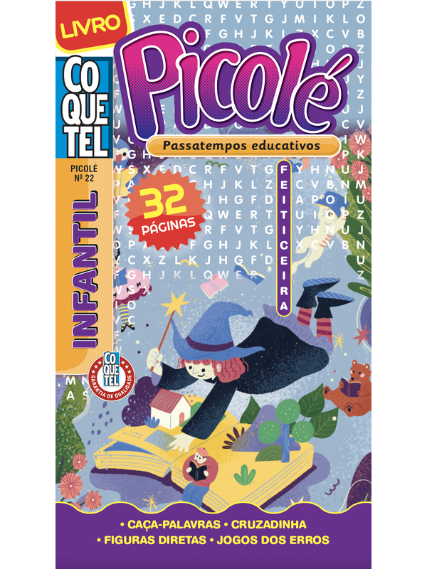 • Reduza o tempo de tela com os passatempos Coquetel! Quer promover momentos de diversão longe das telas para os pequenos? Deixa com a gente!O livro Picolé — Passatempos educativostraz 32 páginas completamente coloridas e repletas de caça-palavras, cruzadinhas, figuras diretas e jogos dos erros, pensa