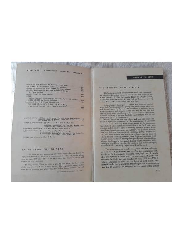 - brochura grampeada - bom estado geral apesar do amarelado do tempo nas capas, nos cortes, na primeira e última folha, - de 577 à 637 pp - An Independent Socialis Magazine , - The Kennety - Johnson Boom (The Editors ) - The Scars of the Ghetto ( Lorraine Hansberry ), - Quebec: Nationalism & The Wor