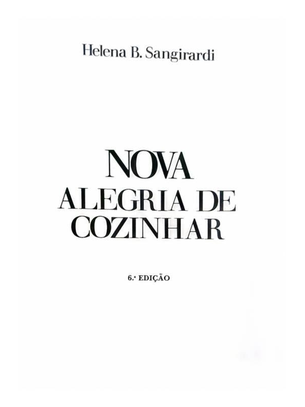 • Nova Alegria de Cozinhar . Helena B. Sangirardi . Record . 1983 . 591 páginas . capa dura em bom estado . sem sublinhados
